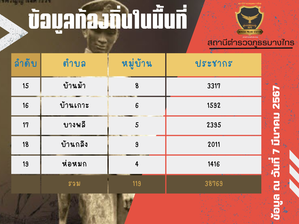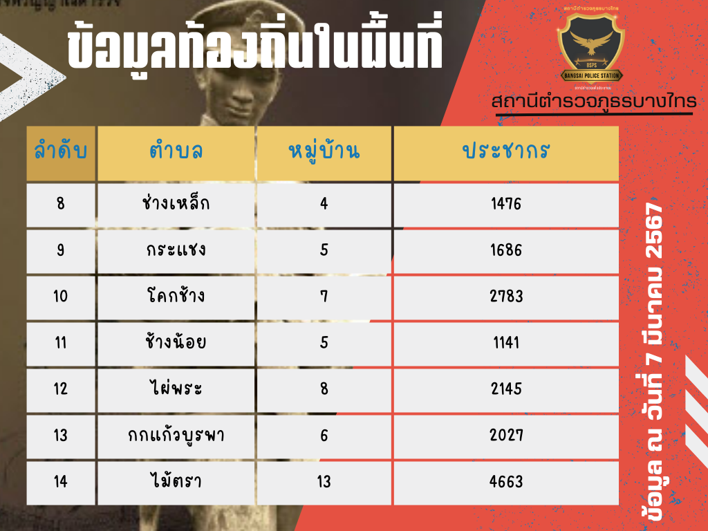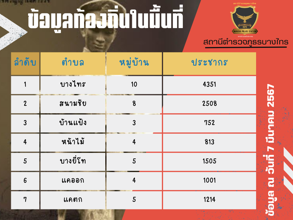 เขตพื้นที่รับผิดชอบสถานีตำรวจภูธรบางไทร