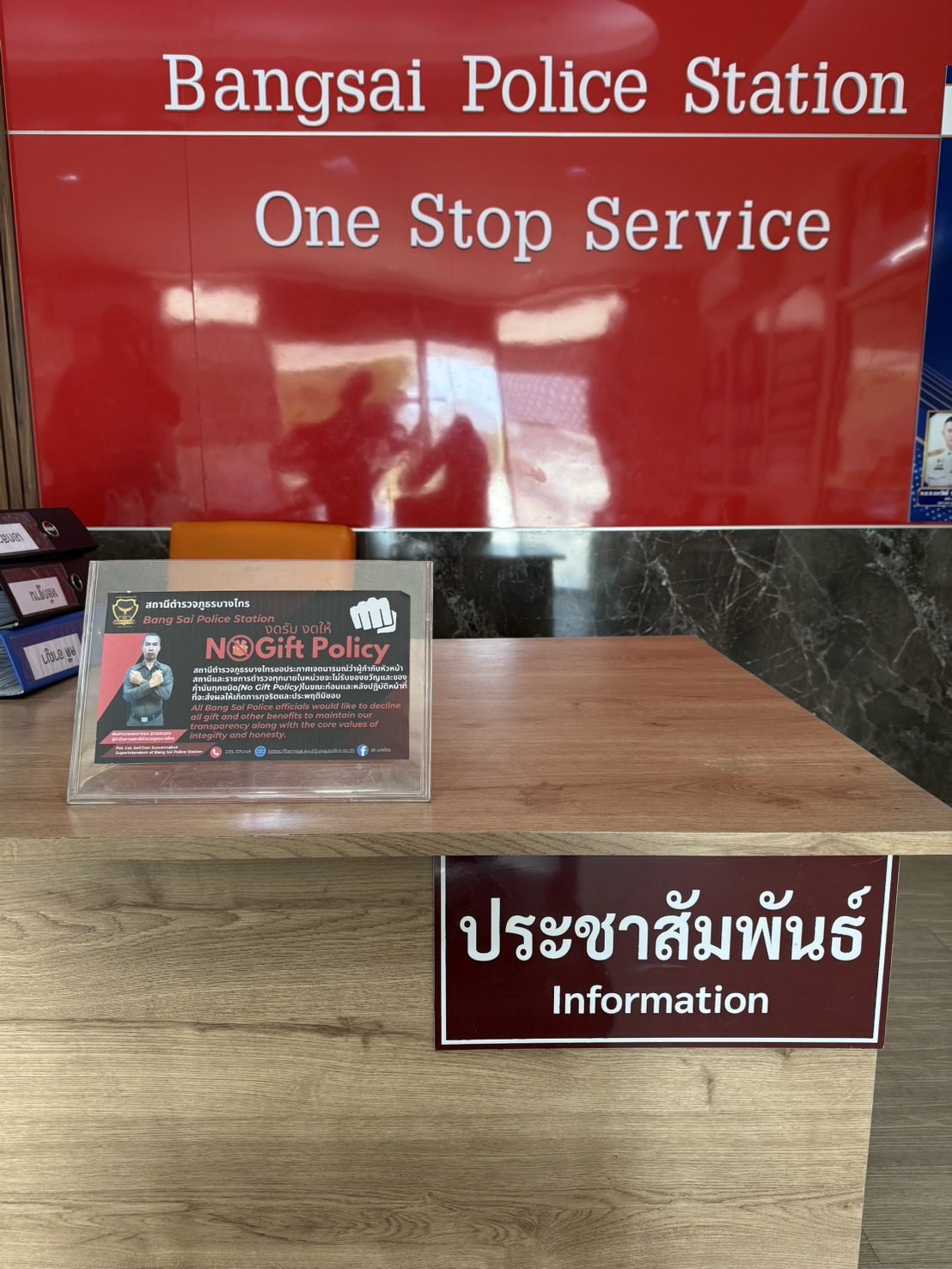 ติดป้าย  No Gift Policy ณ จุดบริการ One Stop Service และ จุดประชาสัมพันธ์