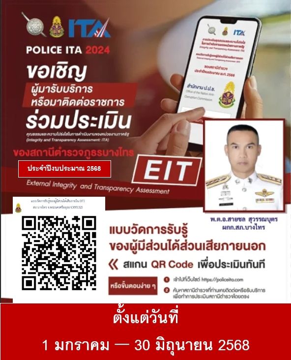 สถานีตำรวจภูธรบางไทร ขอแสดงประกาศนโยบายการต่อต้านการรับสินบน (Anti-Bribery Policy) โดย พ.ต.อ.สายชล  สุวรรณบุตร  ผกก.สภ.บางไทร และ ได้เผยแพร่ฉบับแปลเป็นภาษาอังกฤษควบคู่กับฉบับภาษาไทย มีรายละเอียด ด้านล่างนี้