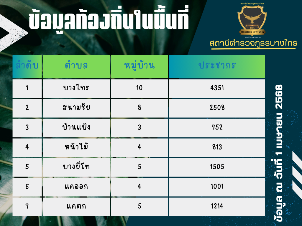 เขตพื้นที่รับผิดชอบสถานีตำรวจภูธรบางไทร