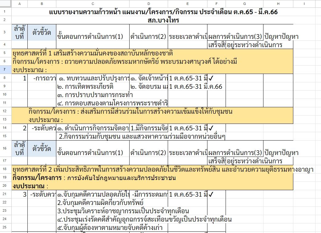 แบบรายงานความก้าวหน้า แผนงาน/โครงการ/กิจกรรม ไฟล์ Excel