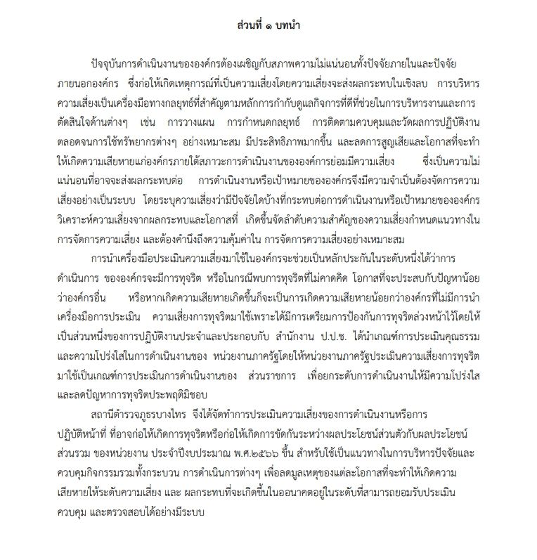 ตัวชี้วัดที่ 10.1 การดำเนินการเพื่อป้องกันการทุจริต / ITA 25 / การประเมินความเสี่ยงการทุจริตและการรายงานผลการดำเนินการเพื่อจัดการความเสี่ยงการทุจริต