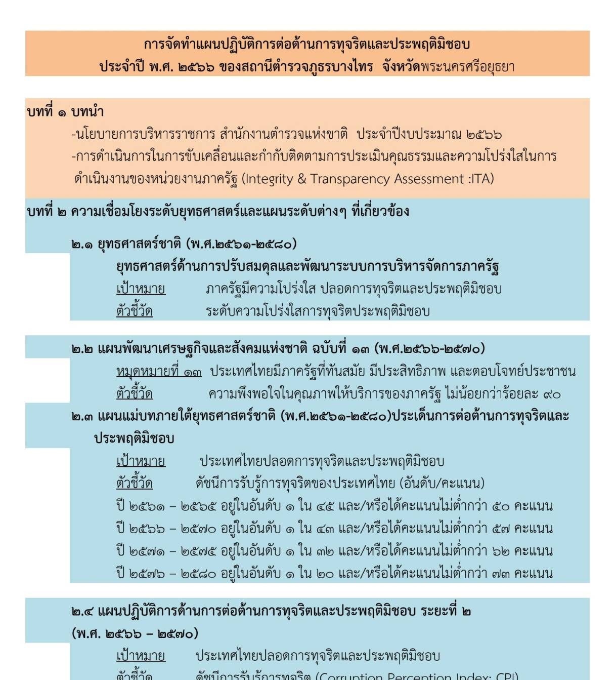 ตัวชี้วัดที่ 10.1 การดำเนินการเพื่อป้องกันการทุจริต / ITA 28 / แผนปฎิบัติแนวทางการต่อต้านการทุจริตและประพฤติมิชอบประจำปีและผลการดำเนินการตามแผนฯ
