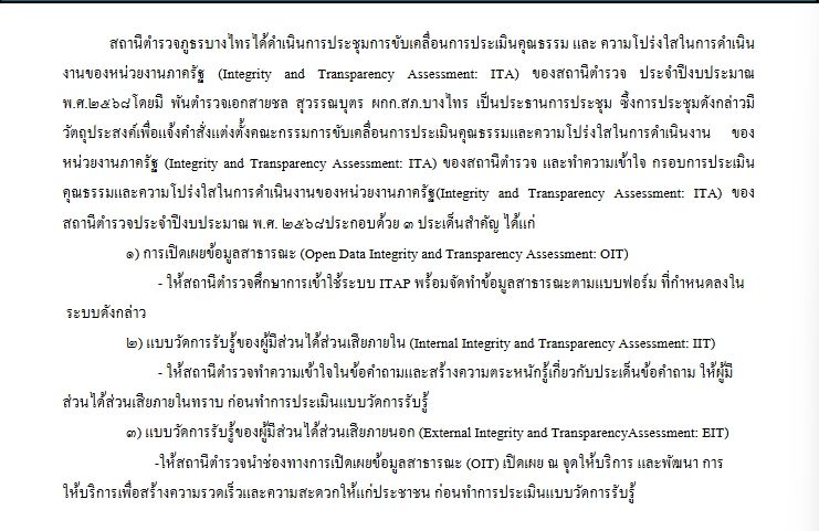 คำสั่ง คณะกรรมการ ITA ของสถานีตำรวจภูธรบางไที ประจำปีงบประมาณ พ.ศ.2568